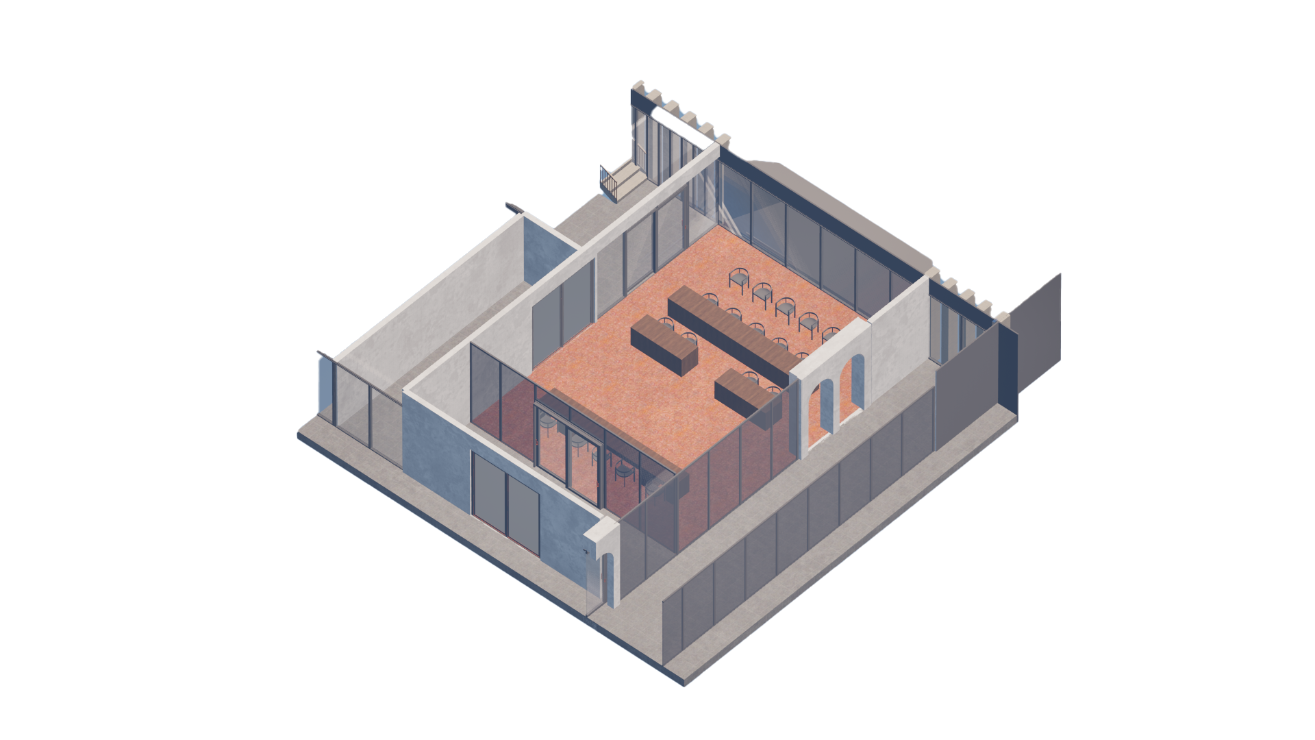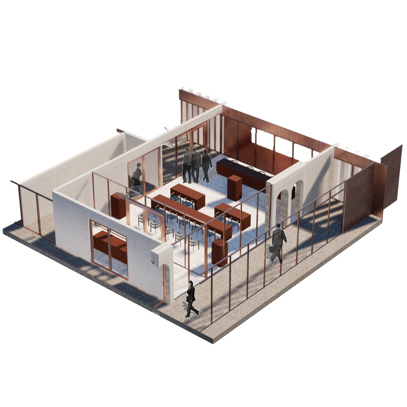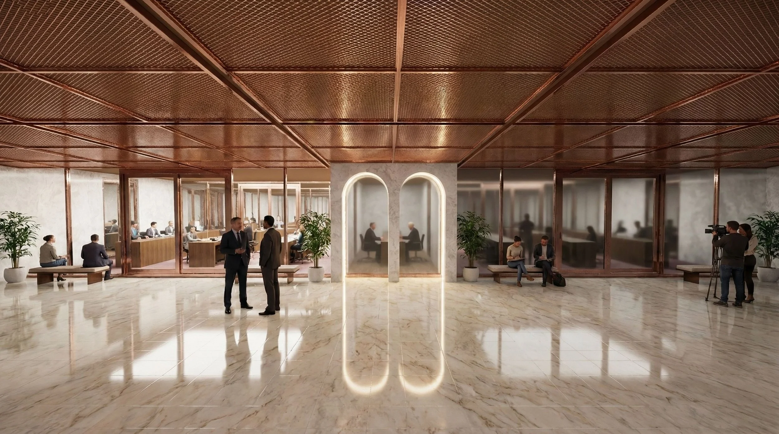 Through these tools, spatial boundaries are reconsidered and redesigned to support openness, accessibility, and interaction. Rather than acting as rigid barriers, thresholds become dynamic spaces of transition that shape how people move, see, and engage with institutional environments. In this way, the design expresses the values of a contemporary democratic era, where institutional spaces are expected to be more transparent, inclusive, and responsive to society.